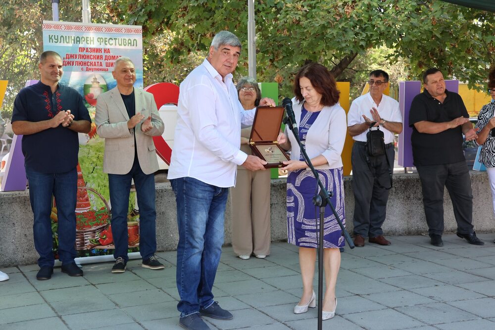 С празника почитаме щедрата земя и ръцете, които се грижат за нея, заяви кметът Васил Христов, и тъй като Джулюница е дала на България не само поколения градинари, но и хора на изкуството, духовността, спорта, днес наградихме доц. д-р Калина Иванова, която също е с джулюнски корени. Доц. Иванова стана първият носител на специално отличие, което Джулюница ще връчва на свои достойни съграждани. Тя има огромен принос за развитието на културата в село Джулюница.
