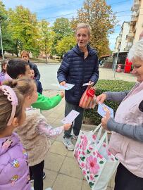 Хлапетата от „Пчелица“ споделиха празника с възрастните хора от Клуба на ветераните. Малките пчелички дариха радост, усмивки и ръчно изработени подаръчета, а в очите на бабите и дядовците блеснаха сълзи от умиление. Децата се срещнаха с възрастни хора и на централния площад „Възраждане“ и ги поздравиха с искрени думи, подариха им своите пъстри картички и им напомниха, че не са забравени и че винаги ще бъдат обичани.