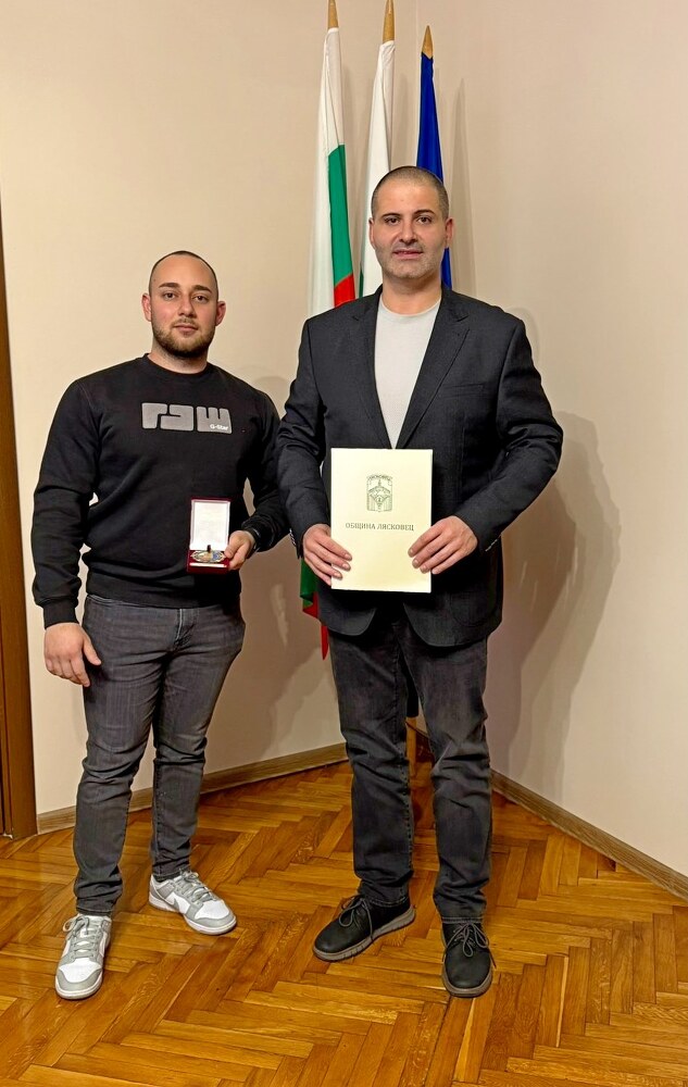Специален гост в кабинета на кмета Васил Христов днес беше Мирослав Петков, който е носител на Наградата „Полицай на годината“, присъдена му в Америка. Кметът Христов поздрави лично 27-годишния мъж, който за кратко се завърна в родния си Лясковец. Христов изрази задоволство от успехите на Петков и му връчи плакет с логото на Община Лясковец, поздравявайки го от свое и от името на гордите с постижението му лясковчани. За мен е истинска чест да се срещнем, благодаря ви и се пазете, поръча на полицая кметът. От своя страна гостът обеща да предостави своя награда, която да бъде поставена в сградата на Общината в родния му град.