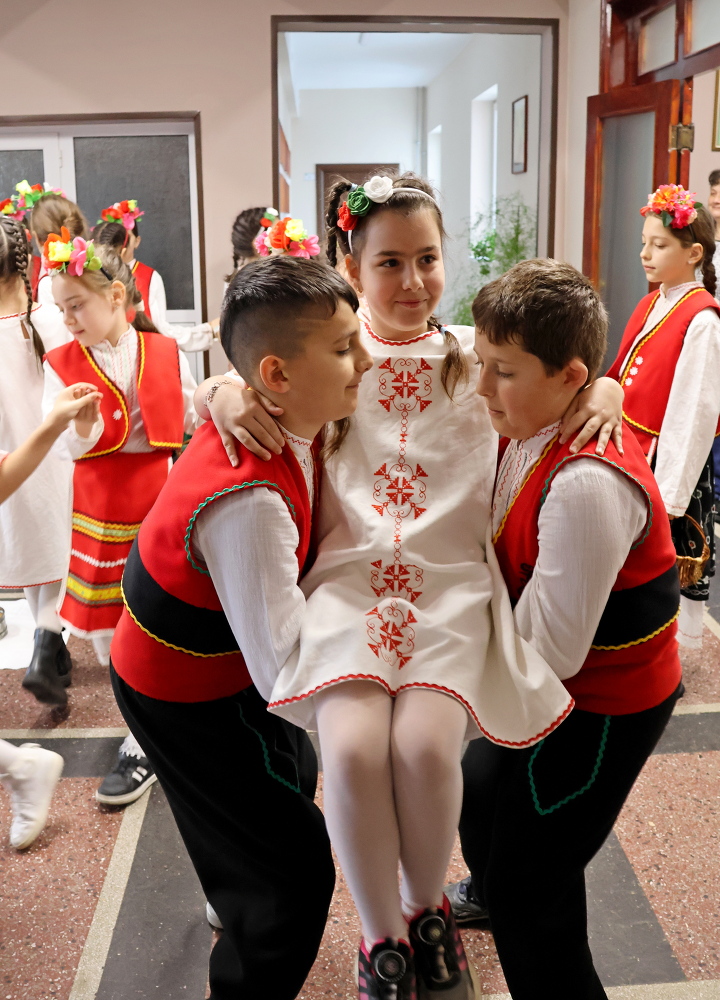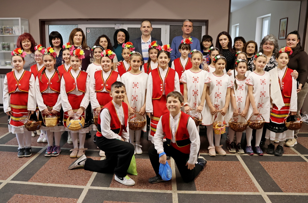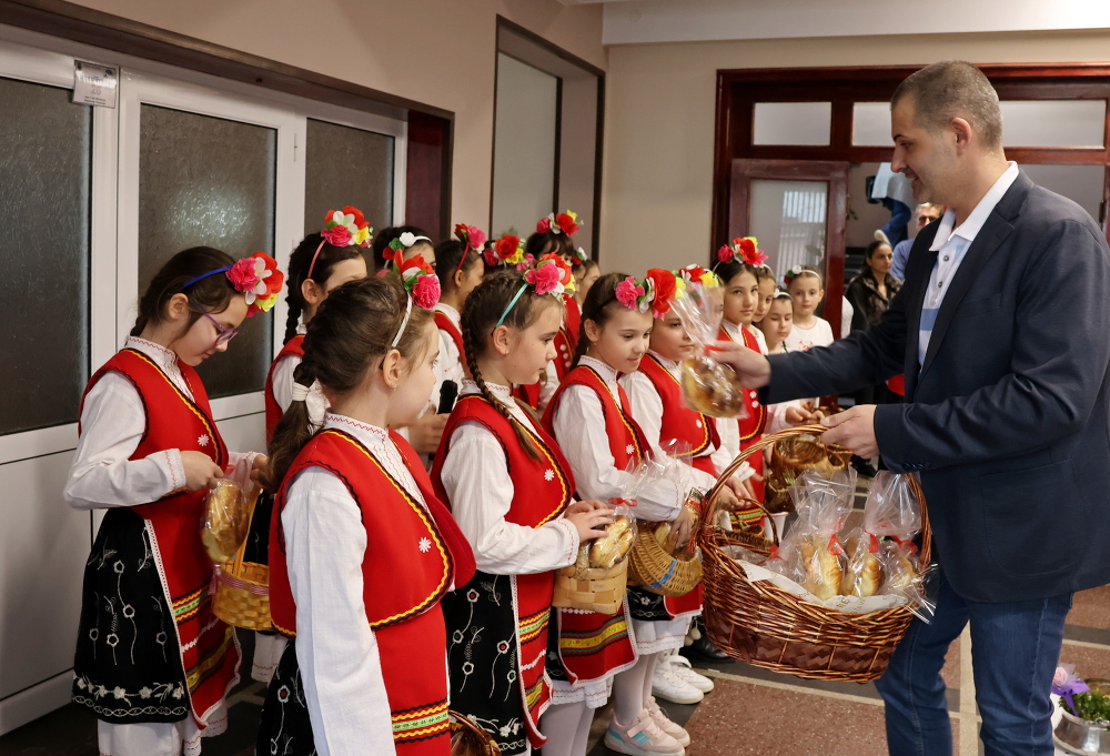 Децата, които посетиха предпразнично кмета и екипа му, бяха възпитаници на СУ „Максим Райкович“. Учениците бяха от третите класове на гимназията, ръководени от учителите Стефка Обрешкова и Николета Петрова. Те изпълниха много богата програма с песни, хора, наричания и типични за празника ритуални действия. Наричайки на кмета Васил Христов като стопанин на дома, те отправиха своите послания за здраве, берекет и благополучие на цялата община.