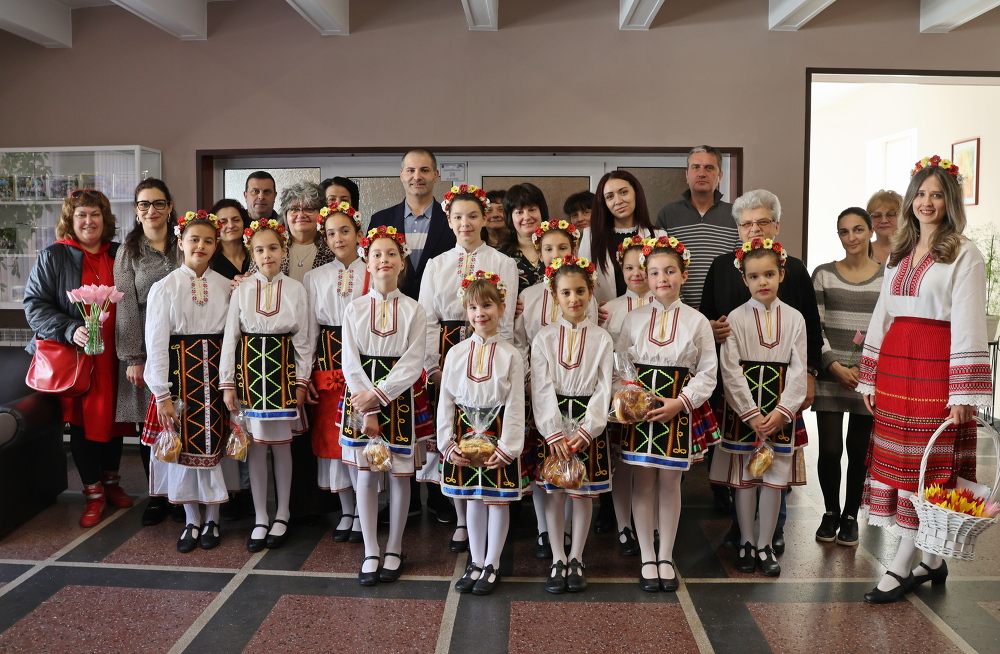 Лазарките от началното училище всяка година правят своята обиколка из града и региона, за да пеят песните си и да благославят. И тази година общинската сграда и местната власт не бяха пропуснати в тяхната празнична програма.