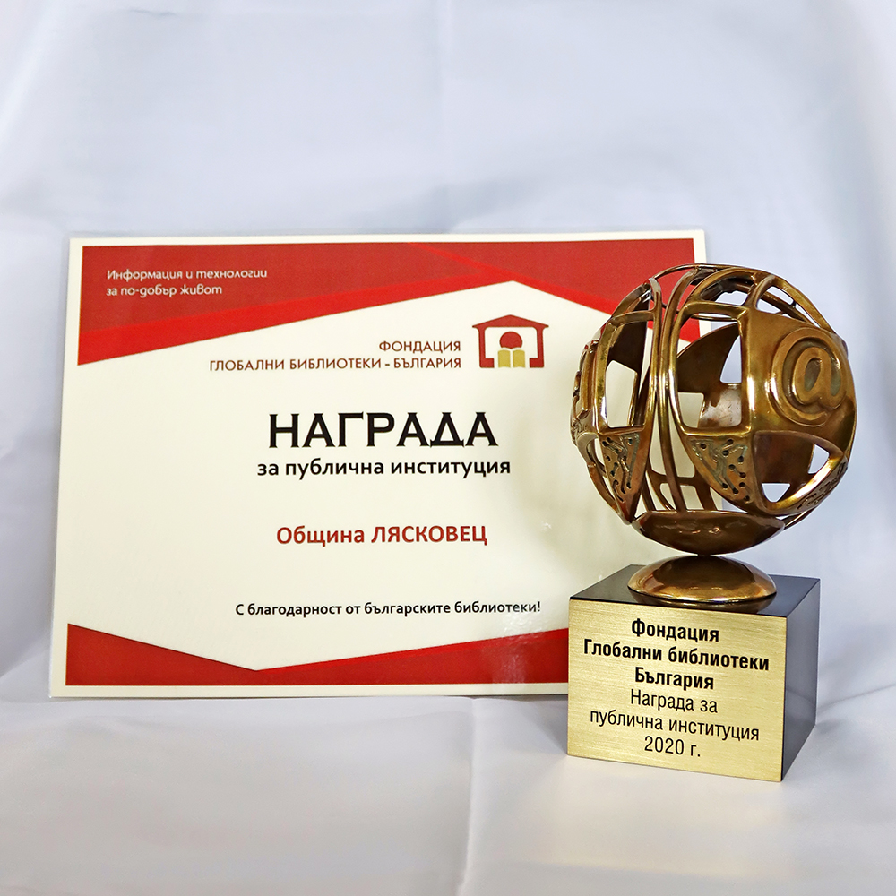 Община Лясковец бе отличена с наградата на Фондация „Глобални Библиотеки - България” в категория „Публична институция”. Фондацията връчва годишни награди, в резултат на излъчени номинации в четири категории - за национална и регионална медия, за спомоществовател и за публична институция, допринесли за популяризирането дейността на обществените библиотеки в страната. Отличието бе присъдено в края на месец ноември 2020 година за успешно планирания и реализиран проект „Ремонт и обновяване на читалище „Напредък-1870” гр. Лясковец”. С осъществените строително-ремонтни дейности и обновената материално-техническата база, най-значимата културна институция в община Лясковец се превърна в модерен и притегателен център за местната общност.