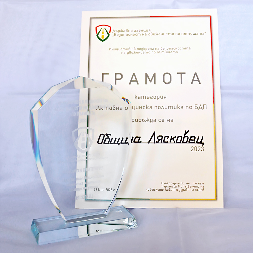Наградата на Държавна Агенция „Безопасност на движението по пътищата” - грамота и статуетка бе присъдена на Община Лясковец през февруари 2023 година за най-добре изготвени и реализирани проекти с цел засилване вниманието на обществото и възпитаване в култура на безопасно и социално отговорно поведение на пътя. Община Лясковец е победител в националната инициатива, насочена към повишаване безопасността на уязвимите участници в движението в населените места чрез дейности: привеждане на пешеходните пътеки в съответствие с нормативните изисквания; специално внимание към обезопасяване на районите с интензивно пешеходно движение; обезопасяване на участъци с повишен риск от ПТП; провеждане на образователни и информационни дейности и други.