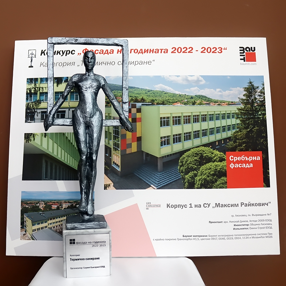 Община Лясковец спечели сребърна статуетка в конкурса „Фасада на годината 2022 - 2023”, организиран от „Баумит България” ЕООД. Две сгради в Лясковец - на Общинска администрация и на Корпус I на СУ „Максим Райкович” бяха номинирани, в резултат на което наградата - Сребърна статуетка, бе присъдена на училището. Целта на конкурса е да бъдат оценени сградите, които съчетават творческото виждане на архитекта с високото качество на използваните продукти и професионалното изпълнение. И двете лясковски номинации се състезаваха в раздел „Термично саниране”. Общинската сграда е проектирана от архитект Анелия Димова, а на спечелилата наградата сграда на училището, проектант е Николай Димов. Изпълнението на строително-монтажните дейности по реновирането и на двата обекта е на фирма „Емили Строй” ЕООД - Лясковец. Всички победители, както и номинираните обекти, избрани от журито представят България в международния конкурс „Баумит Лайф Челиндж”, през месец май 2024 година в Любляна.