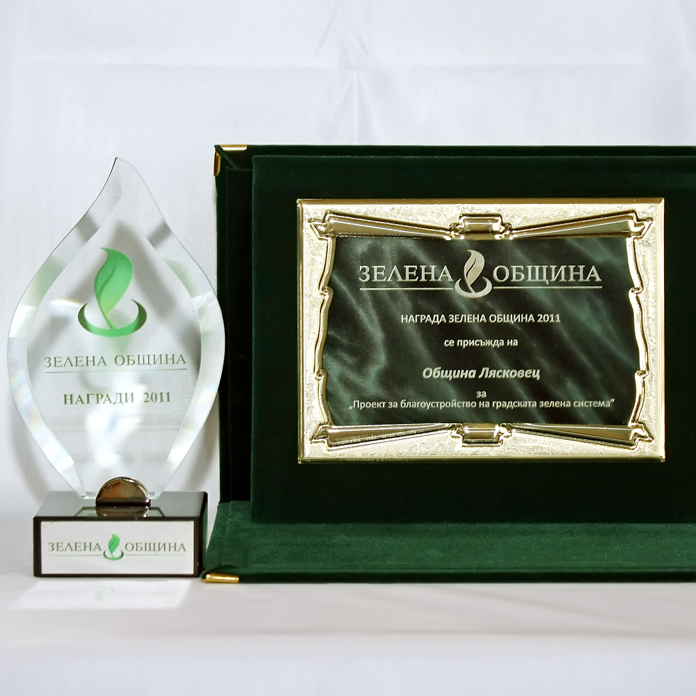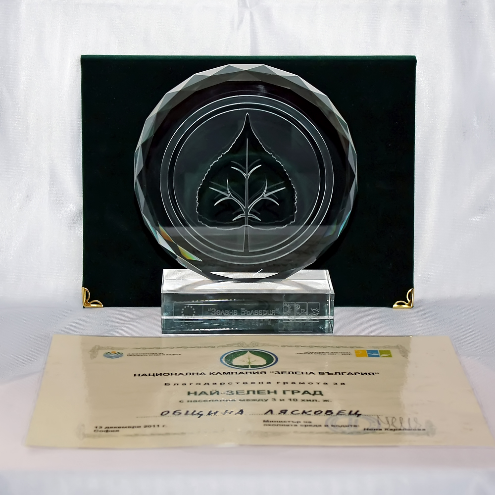 На 12 декември 2011 г. Община Лясковец получи приз „Зелена община” в категория „Проект за благоустройство на градската зелена система”, в конкурса за 2011 година. Престижната наградата бе получена лично от д-р Ивелина Гецова, кмет на община Лясковец, на официалната церемония организирана от фондация „Зелена община” в хотел „Кемпински Зографски” гр. София. Инициативата цели да популяризира и възпитава добрите практики в развитието на зелените системи на българските общини и въвеждането на модерни водо и енергоспестяващи технологии. Признанието на Община Лясковец бе дадено за реализацията на проект „Устойчиво и интегрирано развитие на град Лясковец, чрез благоустрояване на обществени пространства”, финансиран по Оперативна програма „Регионално развитие 2007 – 2013”.