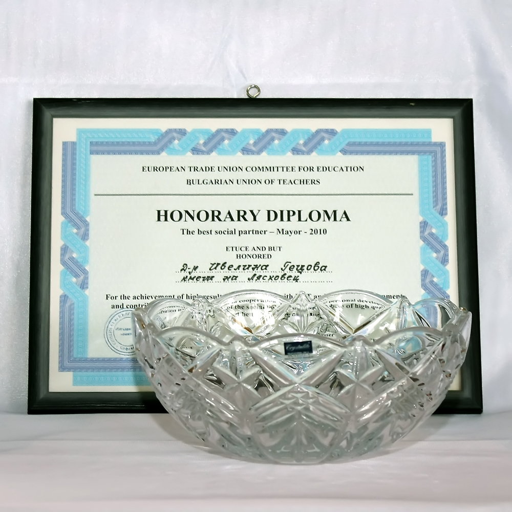 Призът за най-добър социален партньор-кмет на 2010 година бе получен от кмета на Община Лясковец д-р Ивелина Гецова на пищна церемония в парк-хотел „Москва” в столицата на 10 декември 2010 година. Плакета „Най-добър социален партньор-кмет” връчиха лично генералният секретар на Европейския синдикален комитет по образование Мартин Ромер и председателят на Съюза на българските учители Янка Такева. Призът се присъжда на д-р Гецова за постигане на високи резултати в сътрудничество със СБУ през 2010 г., за лично развитие и принос в процеса на социално партньорство на базата на високо качество на образование и по-добри условия на труд. За 2010 година признанието е с европейски мащаб и доказва, че кметът на Община Лясковец е оценен на най-високо ниво като най-добър кмет-социален партньор през годината.