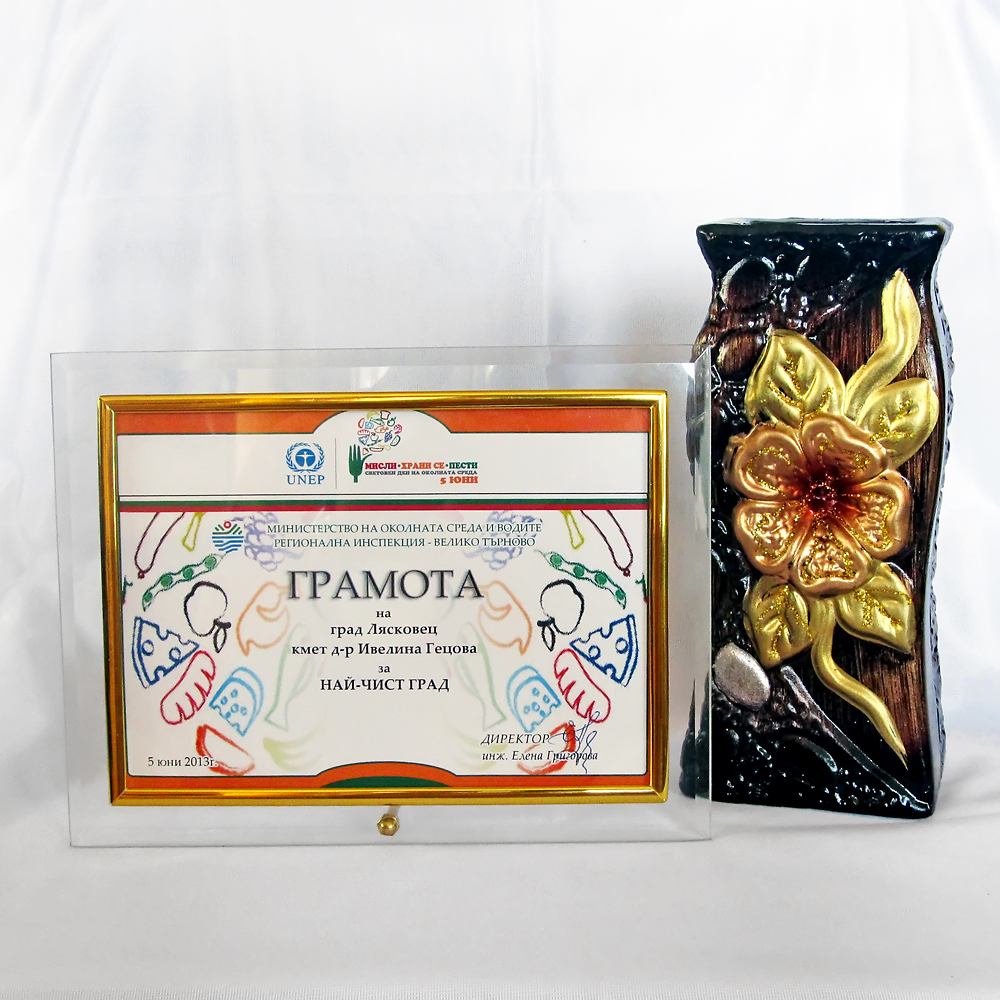 Наградата „Най-чист град” бе присъдена на град Лясковец в Международния ден на околната среда и водите - 5 юни във връзка с провелата се от 2 до 7 юни 2013 година „Зелена седмица” и кампанията „Мисли - храни се - пести”, обявена от Програмата на ООН за околна среда, насочена против загубата на храна и насърчаваща действия за намаляване на хранителните отпадъци.