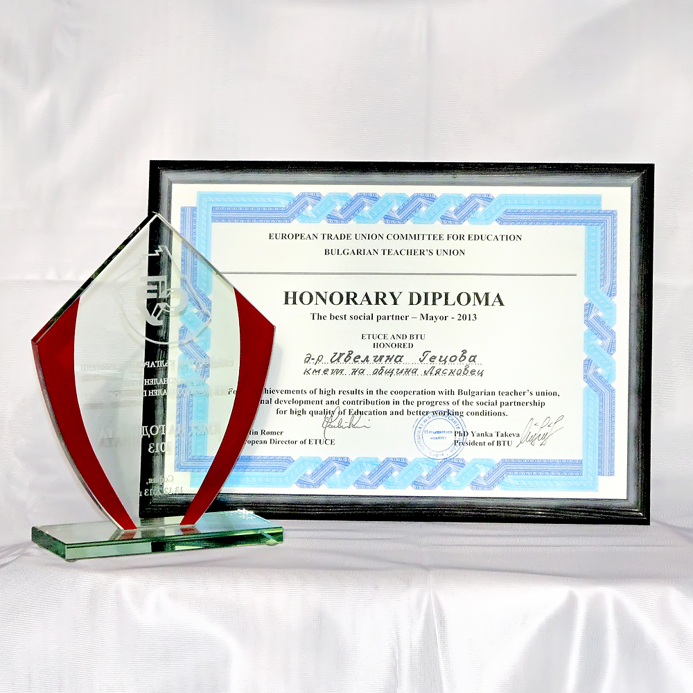 Наградата за най-добър социален партньор-кмет на 2013 година бе присъдена на кмета на община Лясковец д-р Ивелина Гецова. Призът се присъжда за постигане на високи резултати в сътрудничество със Съюза на българските учители, за лично развитие и принос в процеса на социално партньорство на базата на високо качество на образование и по-добри условия на труд. С тази награда д-р Гецова бе удостоена за втори път, след като тя й бе връчена и през 2010 година.