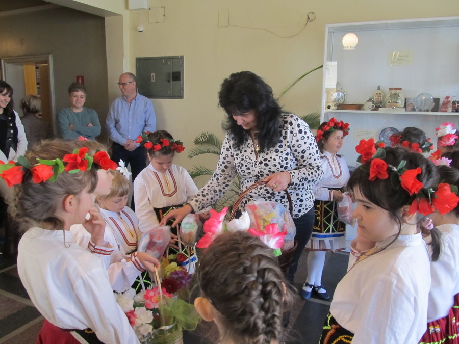 Облечени в празнични носии, нашите малки моми – около 10-годишни момичета, изпяха пред общинското ръководство и администрацията своите обредни песни, танцуваха момински танци и пожелаха „пълна къща със здраве и берекет”. Домакинята д-р Гецова, както повелява традицията, ги дари с лакомства, пожела им здраве и пълни с шестици бележници, а на изпроводяк всички служители на Общината пуснаха парички в обкичените с цветя момински кошнички.