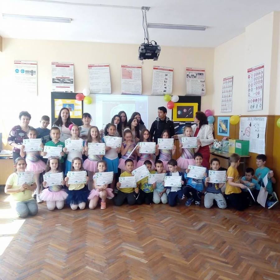 По-големите ученици от осми клас Габриела Йорданова, Кристияна Стоянова, Христина Величкова и Ева Тодорова, представиха сътворяването на Земята като един по-различен приказен свят. Те бяха подготвили забавни въпроси от физиката и астрономията и представиха своята кръстословица с ключова дума: „Вселена“. Инициативата включваше и изложба на рисунки и постери, изработени от Иван Пенев, Николай Тодоров, Десислава Добрева и Жения Цонева, които представиха своето виждане за един различен свят, а именно - извънземния разум във Вселената. Презентация за проблемите, възникнали от космическите отпадъци и опазване на Космоса от тях, бяха подготвили ученичките Ивона Ярославова, Симона Иванова и Никол Саламанова. В урока по доброта се включиха и малките еколози от втори клас, а трите феи, с които гостите се запознаха, разделиха участниците в три отбора – син, жълт и зелен, символизиращи разделното събиране на отпадъците и тяхното по нататъшно рециклиране и използване отново.
