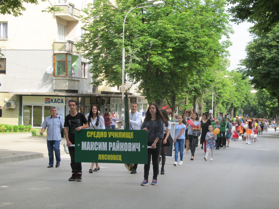 На днешния 24 май България чества Деня на славянската писменост. Десетки ученици и учители в пъстро шествие, препълниха главната улица на Лясковец – „Трети март” и централният площад „Възраждане”. С плакати на своите патрони и с ликовете на Солунските братя, с развяти знаменца, балони, гълъби, слънца и цветя в ръце, учители и деца озариха деня на националната ни гордост. Под звуците на „Върви, народе възродени!” тържественото шествие, водено от фанфарния състав, мажоретките на СУ „Максим Райкович” и знаменосците на училищата, прекоси площада на града, под бурните аплодисменти на гражданите. Пред откритата сцена, момичета от мажоретния състав изиграха своя танц, облечени в новите си празнични одежди. С нови облекла са и младите музиканти от фанфарния колектив на училището. Те получиха екипите си в навечерието на патронния си празник, а мажоретките бяха зарадвани с красиви костюми в навечерието на 24 май. Минути след това всички ученици показаха своите изпълнения на сцената в читалището.
