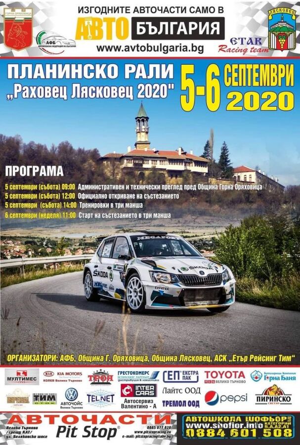 Тази събота и неделя, на 5 и 6 септември ще се състои дългоочакваното от почитателите на високите скорости планинско рали-състезание „Раховец-Лясковец“. Надпреварата беше организирана и преди два месеца, но не се проведе, а причината бе увеличаващият се по същото време брой заразени с коронавирус в областта ни.